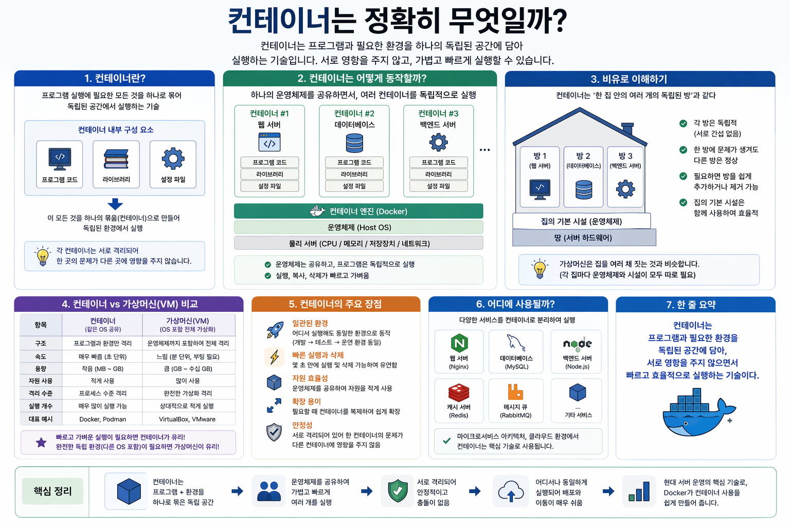 컨테이너는 하나의 큰 집 안에 방을 나눠서 쓰는 것과 비슷하다.